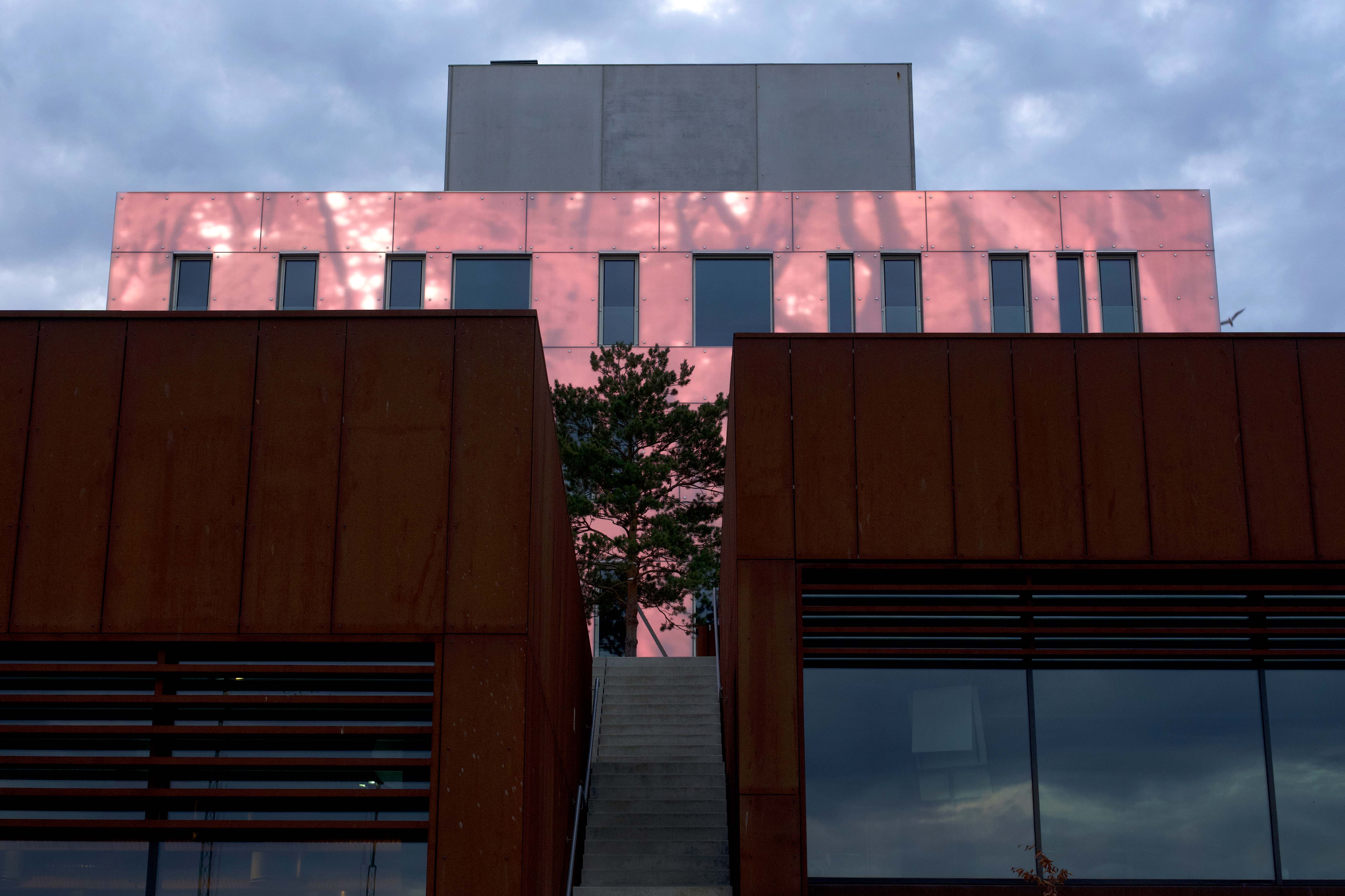 Kunstværket The Garden in the Machine er skabt af videokunstner Jesper Just. Værket er en digital installation, der består af film og lyd, og det er skabt til facaden på Filmby Aarhus' nyeste bygning. Værket tændes hver dag fra solnedgang til kl. 23.00.